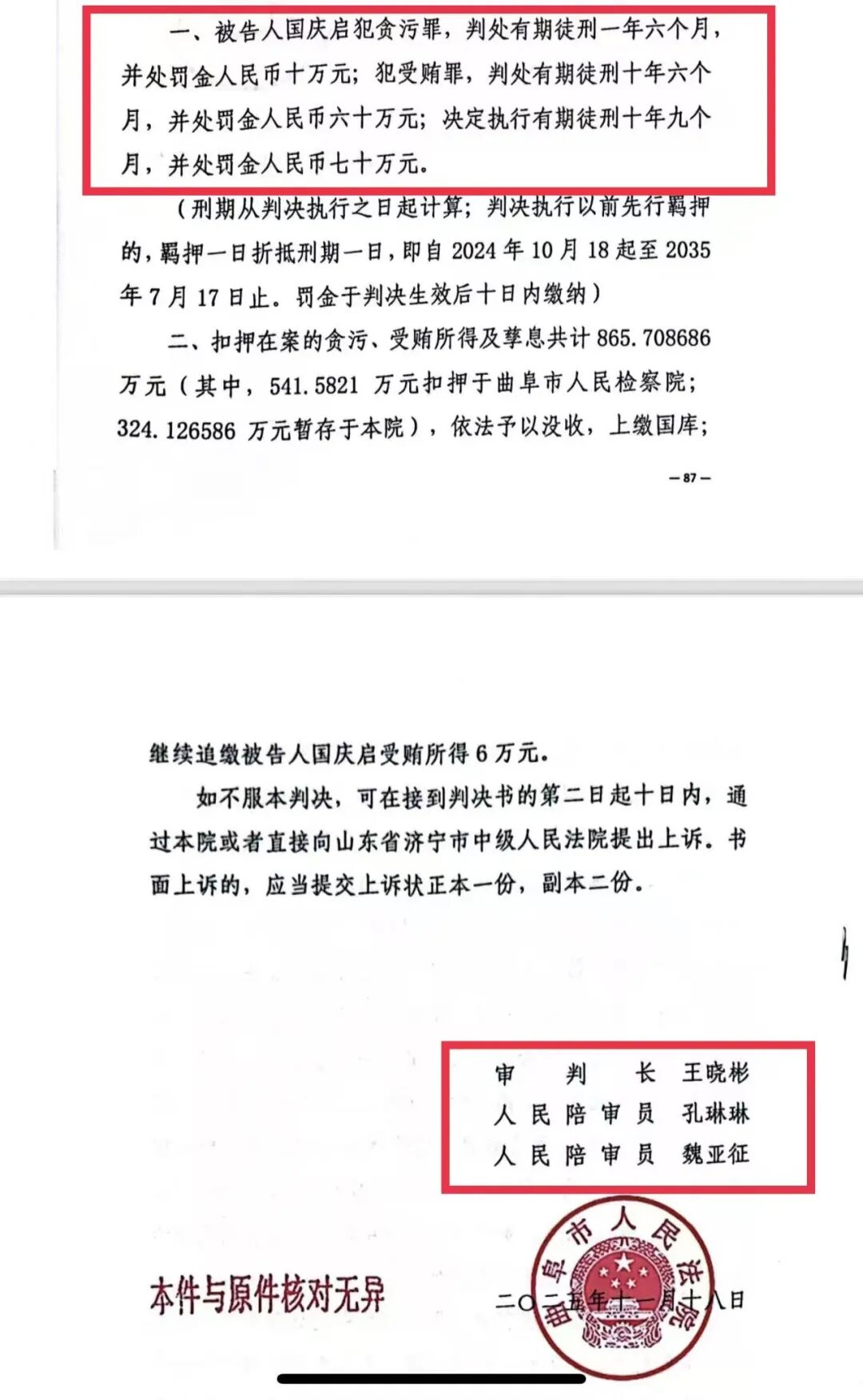当个律协会长60万?——济宁市司法局原副局长国庆启受贿800余万、另犯贪污罪,仅判刑10年9个月是否畸轻